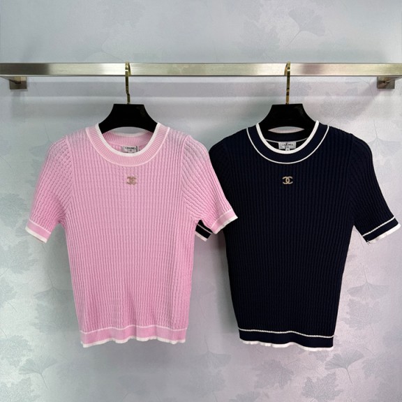 샤넬 라운드넥 슬림핏 니트 반소매