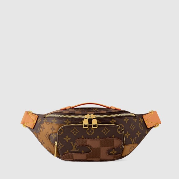 하우스의 아이코닉한 모노그램 캔버스 소재와 다미에 체커보드 패턴이 매혹적인 조화를 이루는 러시 범백. 브라운 색상의 클래식한 모노그램 소재 바탕 위에 다미에 및 모노그램 리버스 패치를 수놓아 독특한 모티프를 완성한 디자인. 조절형 스트랩을 활용해 허리에 두르거나 숄더 백 또는 크로스 바디 백으로 연출할 수 있는 아이템.