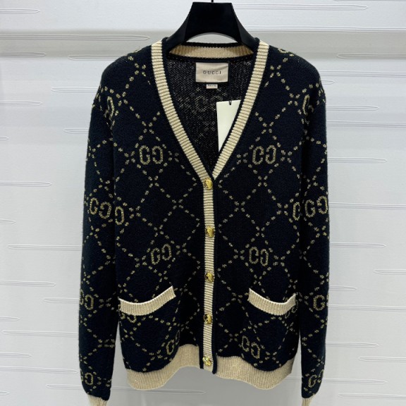 구찌 더블 G 라운드넥 울 V넥 가디건