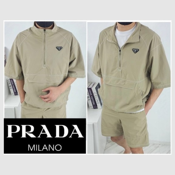 • 프라다 PRD 삼각로고 리나일론 반팔 셔츠 세트