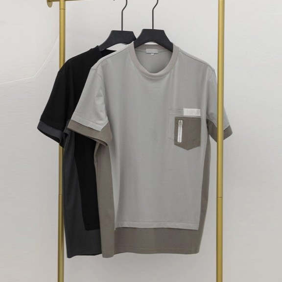 디올 DR 가슴 포켓 배색 반팔 티셔츠
