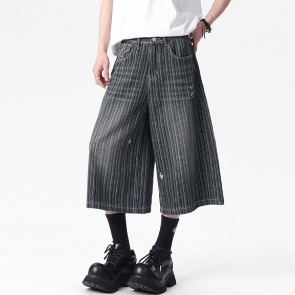 PRD 스트라이프 워싱 데님 버뮤다 팬츠 (남녀공용)