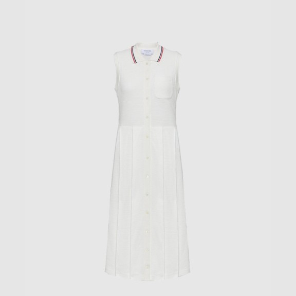 톰브라운 코튼 와플 플리츠 폴로 드레스
