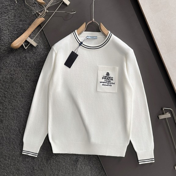 프라다 2025 가을 겨울 자카드 자수 신상 심플 라운드넥 니트 울 스웨터 > 남성