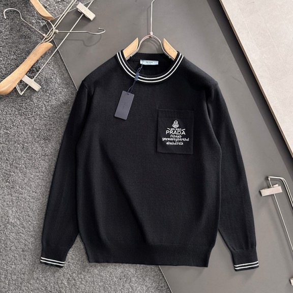 프라다 2025 가을 겨울 자카드 자수 신상 심플 라운드넥 니트 울 스웨터 > 남성