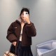 미우미우 25Fw 가을/겨울 신상품 로고 에보니 브라운 숏 퍼 칼라 폴라 플리스 다운 재킷