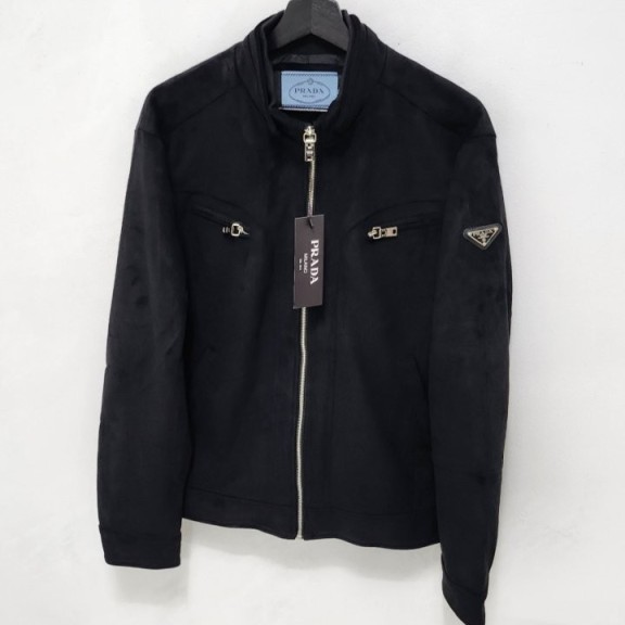 프라다 로고 스웨이드 봄버 자켓
