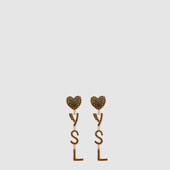 생로랑 메탈 및 크리스탈 소재의 Opyum 하트 이어링 584228