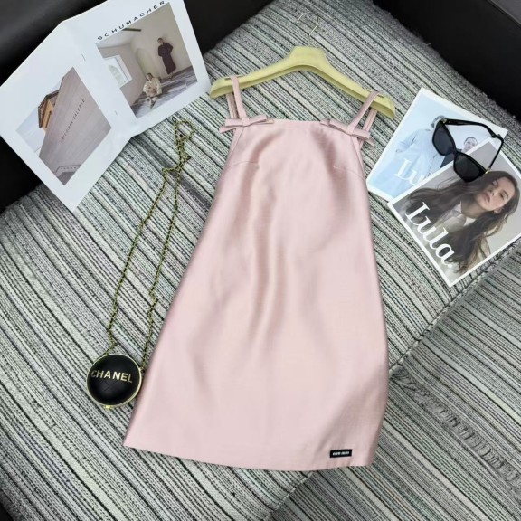 • 미우미우 2026년 초봄 컬렉션 신제품 핑크 보타이 슬립 드레스