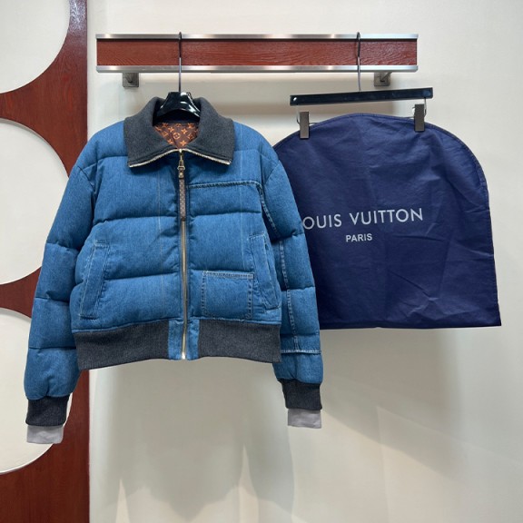 루이비통 데님 패치워크 스탠드업 칼라 숏 다운 재킷