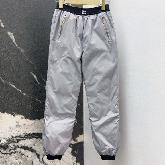 미우미우 스탬핑 퀼팅 다운 팬츠로 보온성 극대화