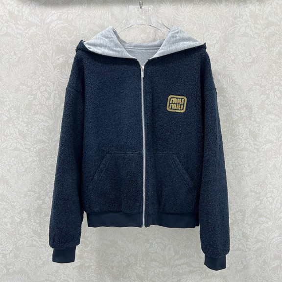 미우미우 네이비 블루 플리스 트림 자켓 > 여성