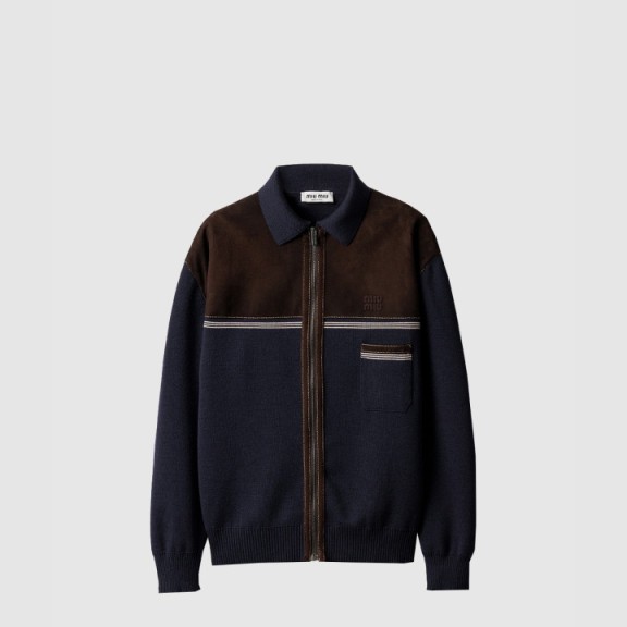 미우미우 울 및 가죽 지퍼 가디건