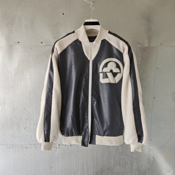 루*비* 플라워 믹스 레더 테디 바시티 자켓
