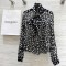 생로랑 물방울 무늬 리본 실크 셔츠